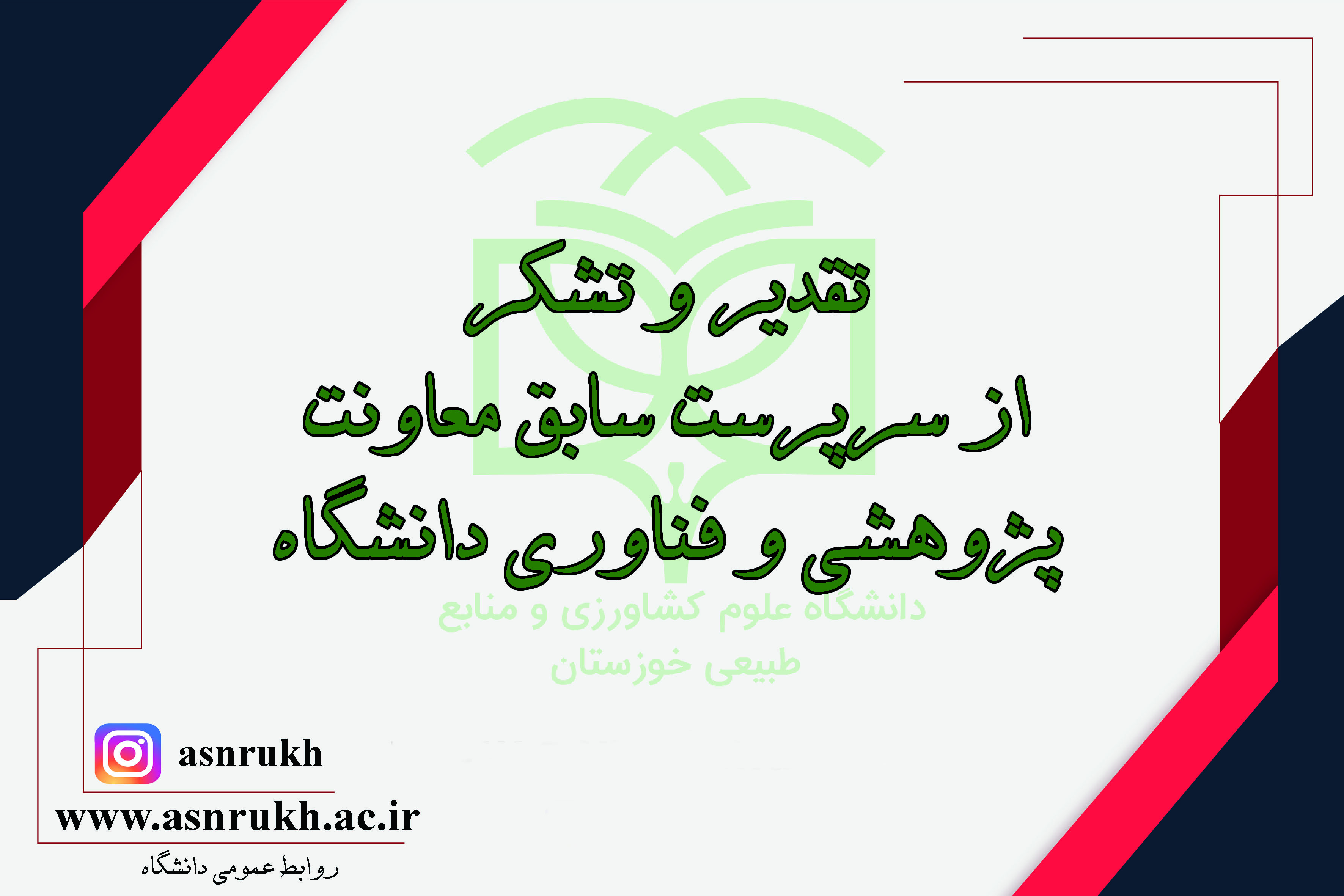 به گزارش روابط عمومی، جناب آقای دکتر عبدشاهی، سرپرست دانشگاه علوم کشاورزی و منابع طبیعی خوزستان، با توجه به استعفای آقای دکتر هدایتاله روشنفکر طی حکمی از همکاری صمیمانه و تلاشهای صادقانه ایشان در زمان تصدی در سمت "سرپرستی معاونت پژوهشی و فناوری دانشگاه" تقدیر و تشکر کردند.