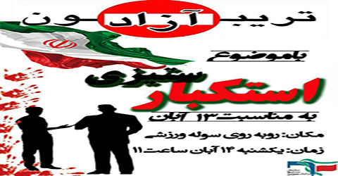 به گزارش روابط عمومی دانشگاه، امروز یکشنبه مورخ ۱۴ / ۰۸/۹۶ تریبون آزادی با موضوع "استکبارستیزی" با حضور جمعی از دانشجویان در محوطه دانشگاه برگزار شد. این برنامه به مناسبت روز دانشجو و به همت بسیج دانشجویی انجام گرفت.