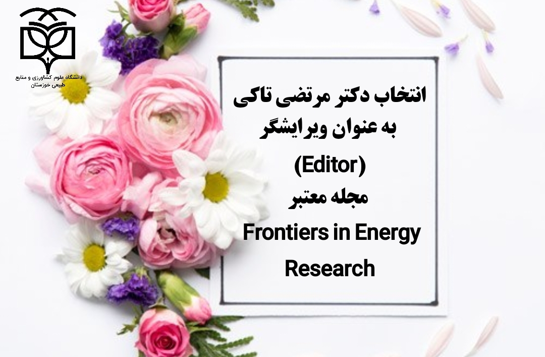 انتخاب دکتر مرتضی تاکی به عنوان ویرایشگر (Editor) مجله معتبر Frontiers in Energy Research