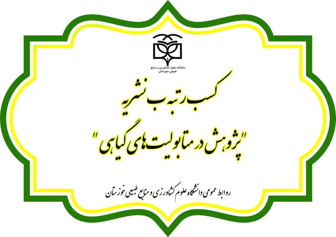 نشان تعهد و تعالی دانشگاه، کسب رتبه ب نشریه "پژوهش در متابولیتهای گیاهی"