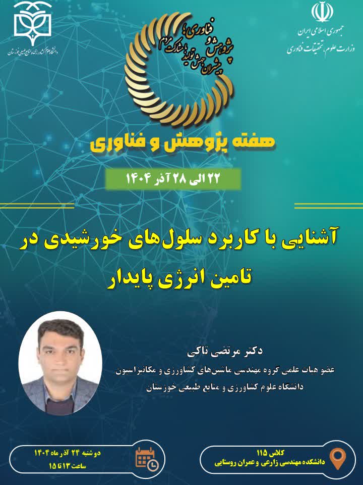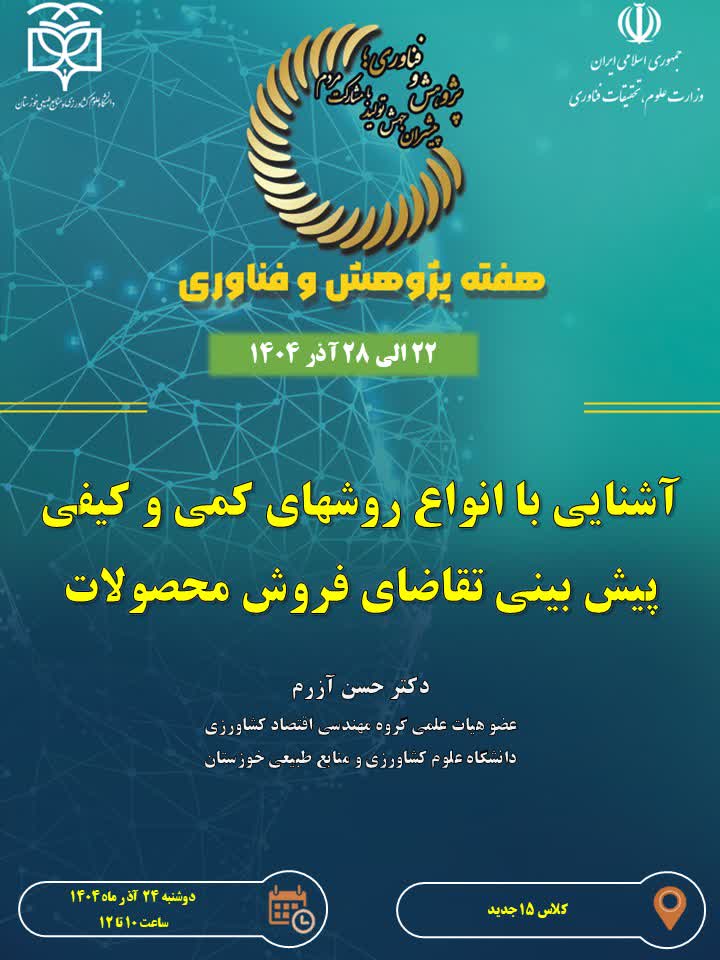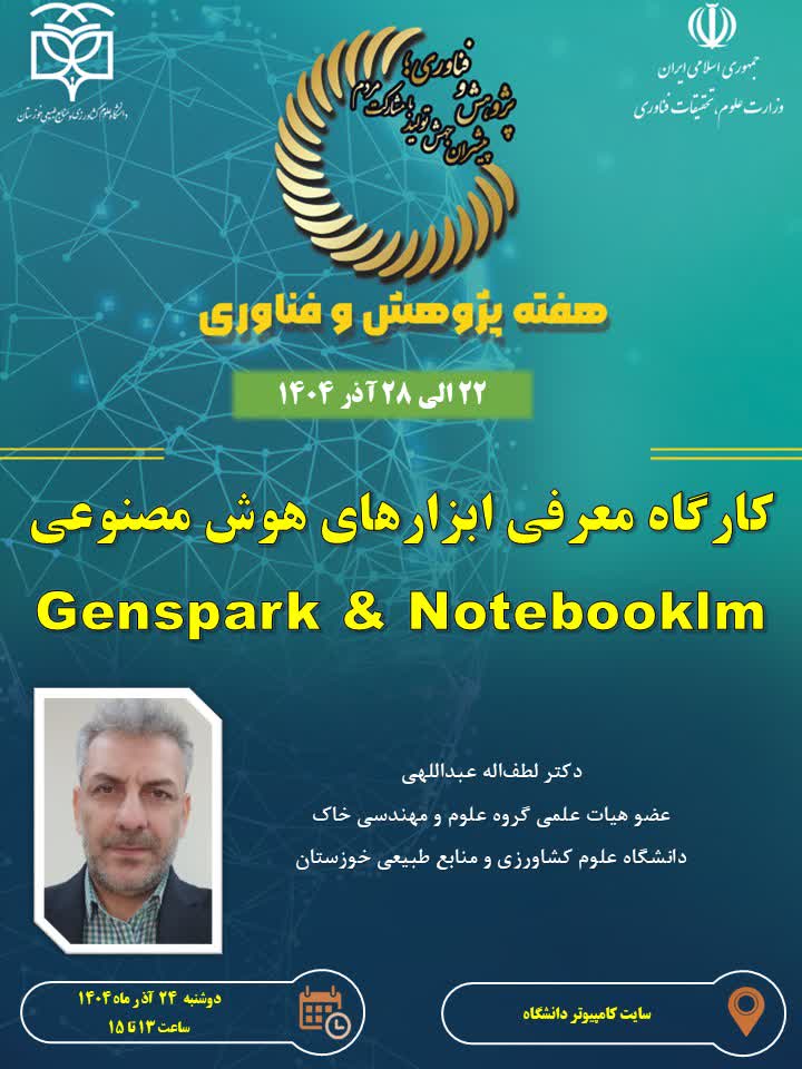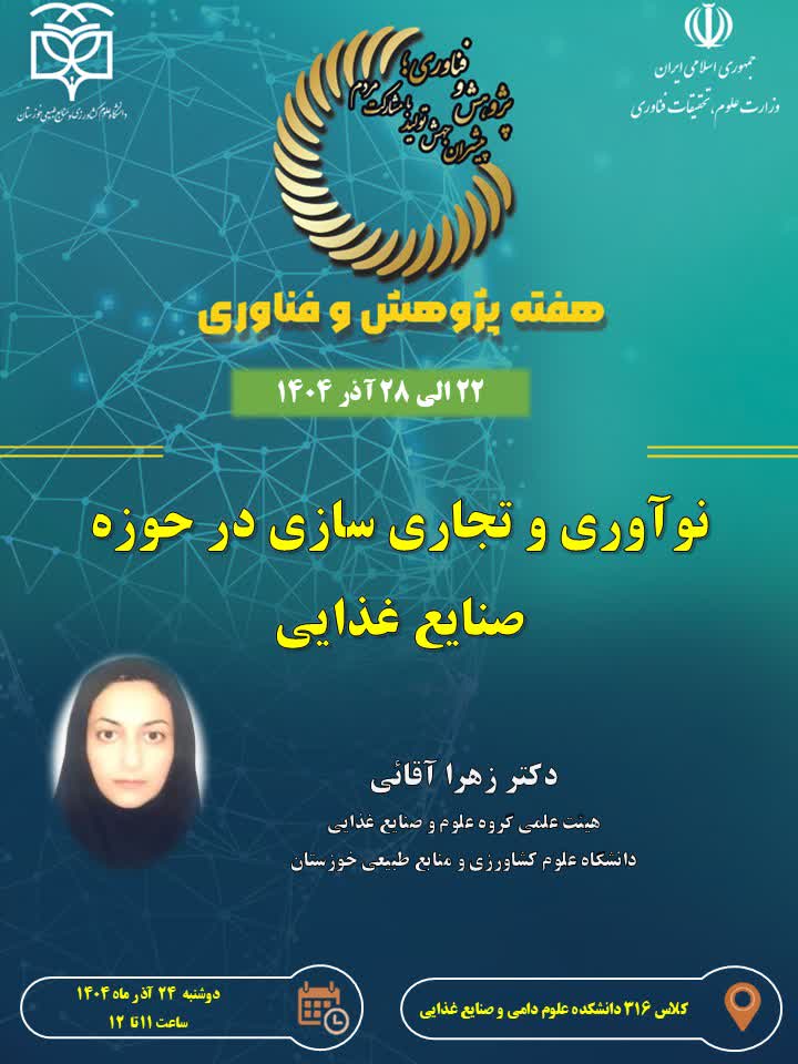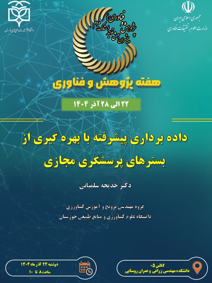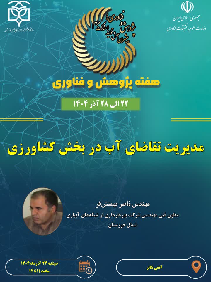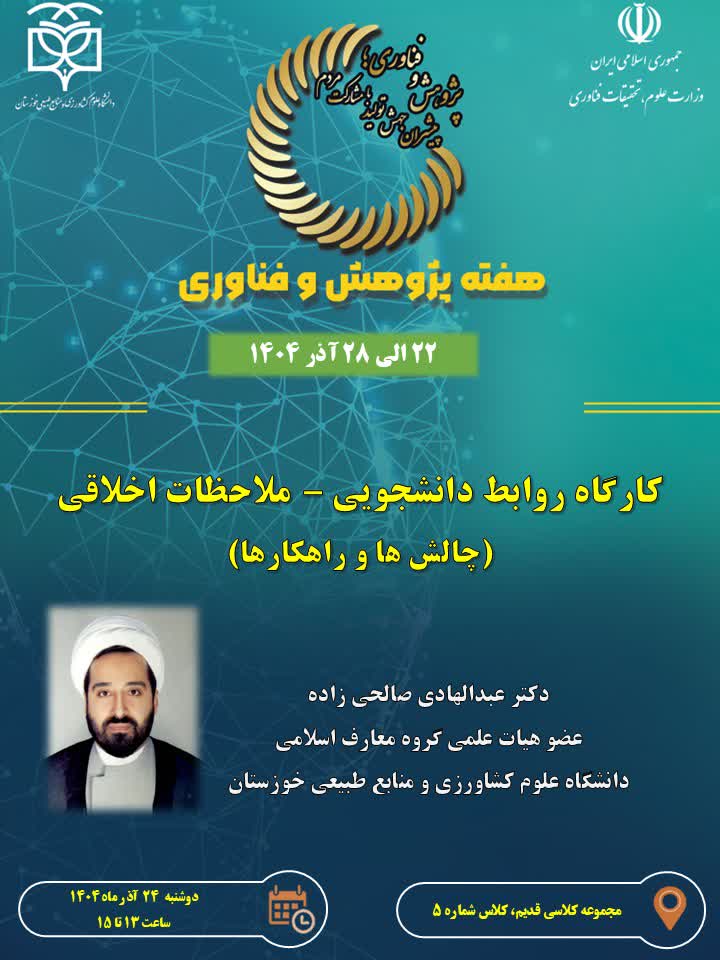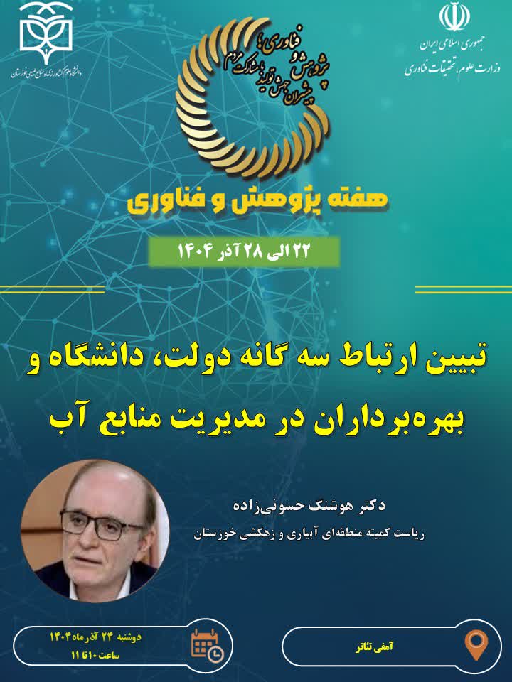 برنامه سمینارها، نشستها و کارگاههای هفته پژوهش و فناوری - دوشنبه ۲۴ آذرماه ۱۴۰۴ ۲۴ آذر ۱۴۰۴ | ۰۹:۲۱ کد : ۶۸۸۶ اطلاعیهها پژوهشی