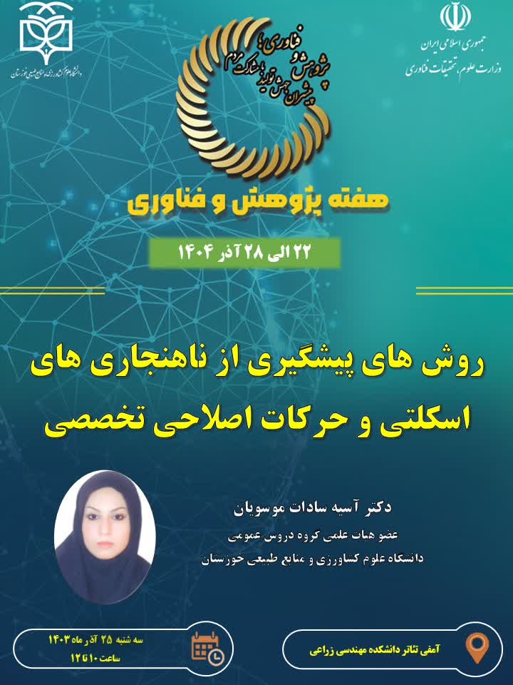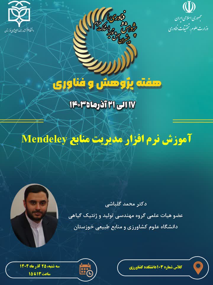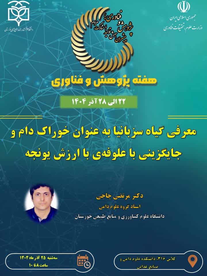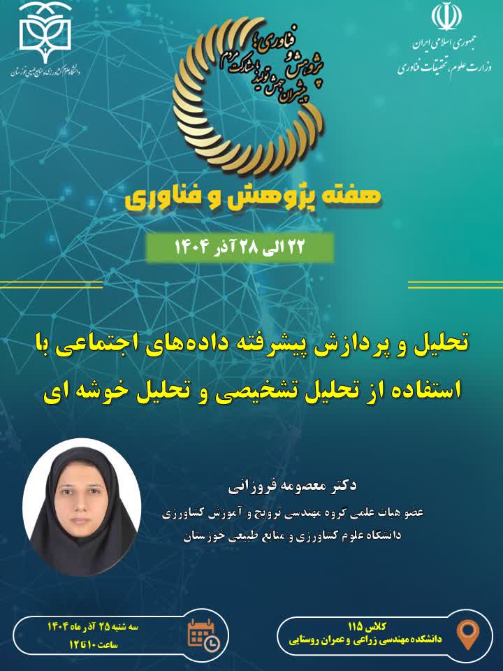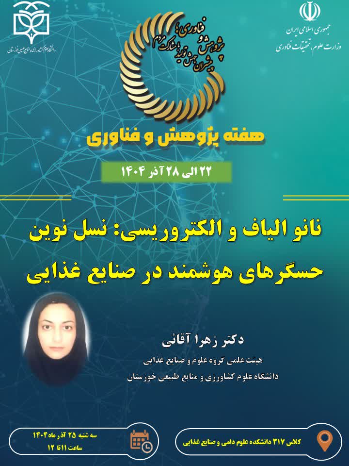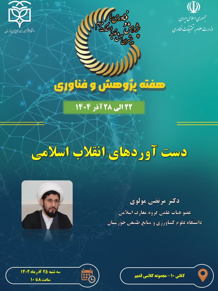 برنامه سمینارها، نشستها و کارگاههای هفته پژوهش و فناوری - سهشنبه ۲۵ آذرماه ۱۴۰۴ ۲۴ آذر ۱۴۰۴ | ۰۰:۴۹ کد : ۶۸۹۱ اطلاعیهها پژوهشی