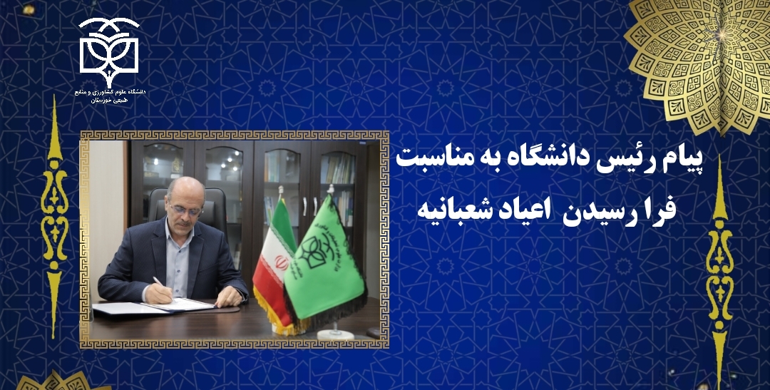 فرارسیدن این اعیاد خجسته را به استادان ارجمند، کارکنان گرامی و دانشجویان عزیز دانشگاه علوم کشاورزی و منابع طبیعی خوزستان تبریک عرض میکنم. امید دارم که برکت این ایام، چراغی روشن در مسیر تلاشهای علمی، پژوهشی و انسانی ما باشد و روحیه همدلی و خدمت را در فضای دانشگاه بیش از پیش شکوفا سازد.