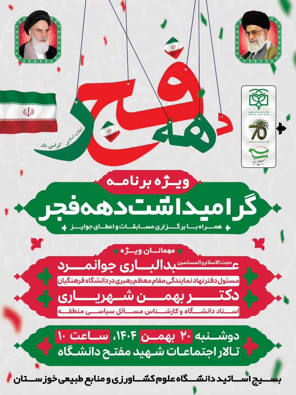 ویژه برنامه گرامیداشت دهه فجر ۱۹ بهمن ۱۴۰۴ | ۰۸:۵۰ کد : ۶۹۶۴ اطلاعیهها عمومی فرهنگی و دانشجویی ارسال به دیگران نام شما ایمیل شما ایمیل دریافتکننده ارسال انصراف تعداد بازدید:۱۳۰