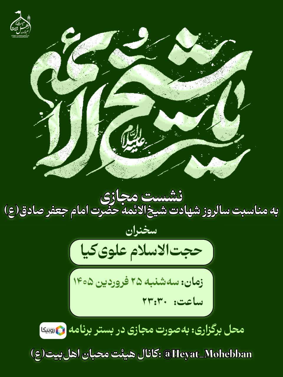 نشست مجازی به مناسبت سالروز شهادت شیخالائمه حضرت امام صادق علیهالسلام ۲۵ فروردین ۱۴۰۵ | ۱۴:۴۵ کد : ۶۹۹۷ اطلاعیهها عمومی ارسال به دیگران نام شما ایمیل شما ایمیل دریافتکننده ارسال انصراف تعداد بازدید:۲۴