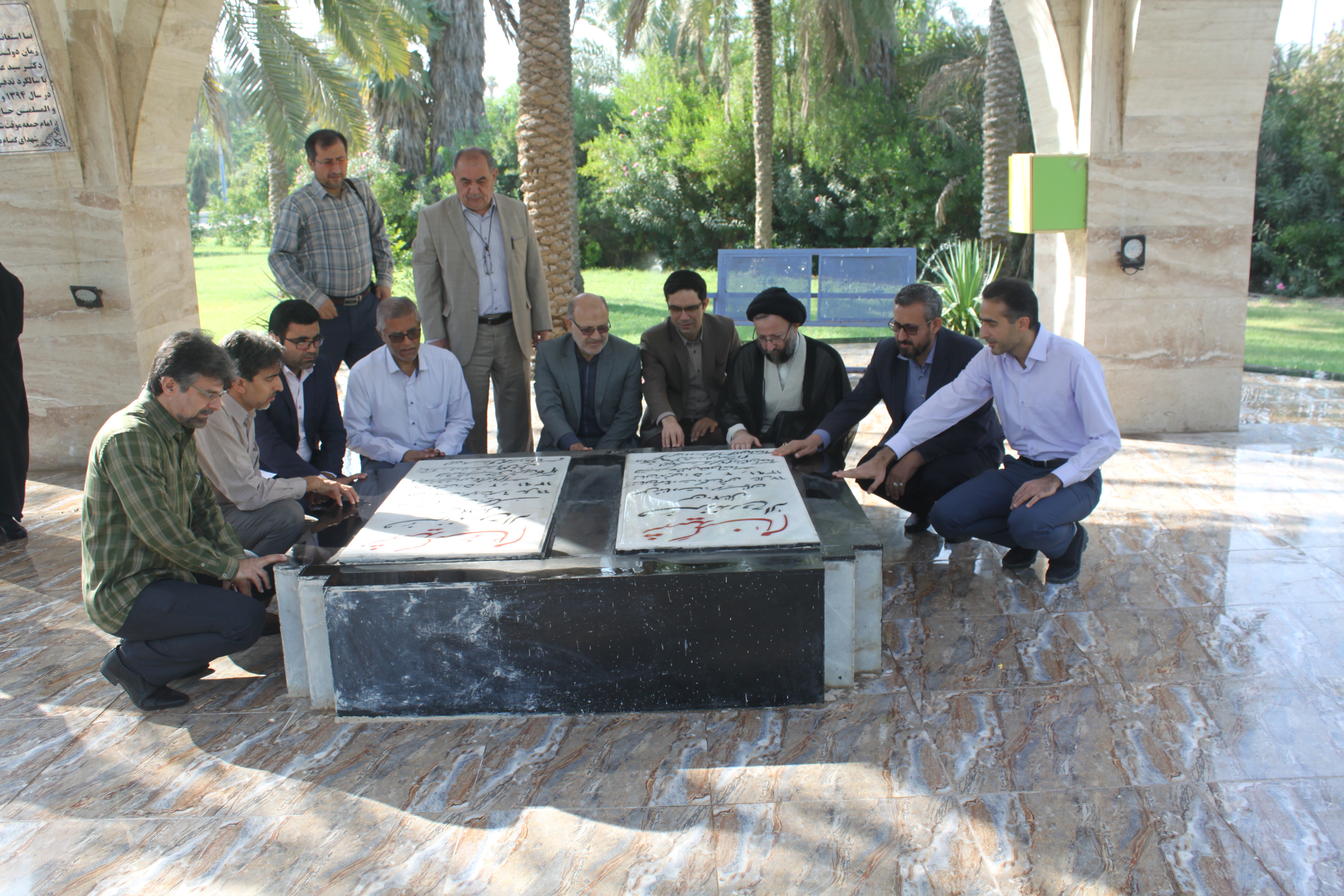 در ابتدای حضور در دانشگاه حاضرین بر مزار معطر شهدای گمنام دانشگاه حضور یافته و با قرائت فاتحه به مقام این عزیزان ادای احترام نمودند.